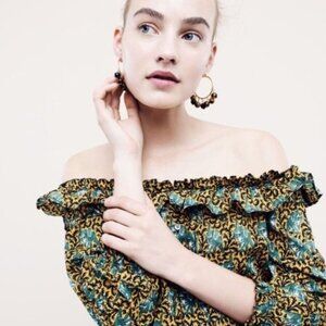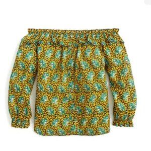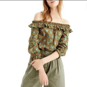 Size 10 J Crew Elephant Print Off the Shoulder Ratti Top Green