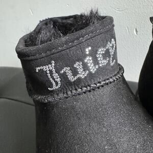 Size 10 Juicy Couture Y2K Black Fuzzy Boots Womens, Bling Winter Furry Slippers