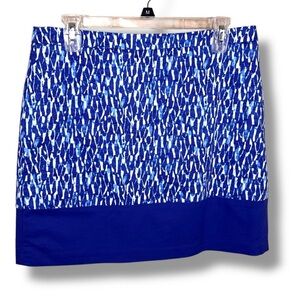 Size 10 Michael Kors Blue White Skirt Abstract Print Cotton Blend Vibrant