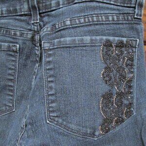 Size 10 NYDJ Dark Denim Bootcut with decorative back pockets. Good conditon.