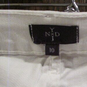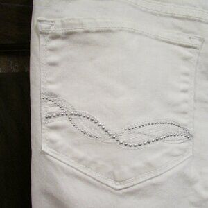 Size 10 NYDJ White Straight Leg Jean with decorative back pockets. Worn once. Like new.