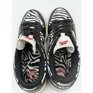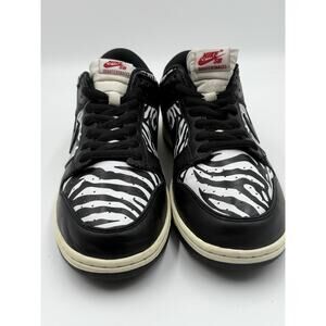 The product is a size 10 Nike Quartersnacks x Dunk SB Low featuring Little Debbie's Zebra Cakes design. This low-top sneaker is part of the Nike Dunk product line and is designed for men who are fans of both Nike and skateboarding. The black colorway with zebra theme gives it a unique and playful look, perfect for athletic use. Released in 2021, this stylish shoe combines fashion and functionality for a standout addition to any sneaker collection.