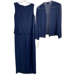 Size 10 R&M Richards 2-Piece Navy Gown & Sheer Jacket Mother of Bride NWT 8555