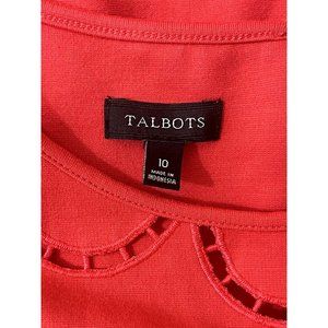 Size 10 TALBOTS RED-ORANGE CUTOUT NECKLINE PONTE KNIT SHEATH DRESS Classy Career