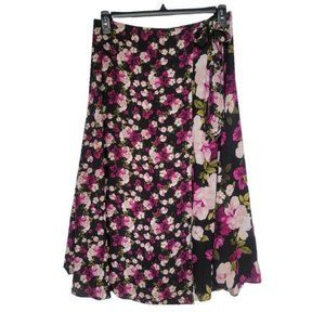✨Size 10 Women's Midi Skirt Calvin Klein Faux Wrap Floral Black Pink A-Line New✨