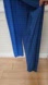 Size 10 blue sapphire long sleeve jersey jump suit with beaded applique and draped by Adrianna Papell. Front has wrap over to hide pant legs and appear as dress!