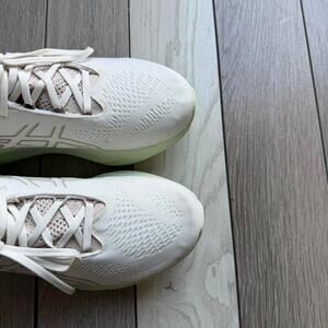 cream athletic shoes, running sneakers, gel Nimbus, women's sports shoes, cushioned sneakers, lightweight trainers, athletic footwear, gym shoes, trail running, comfortable sneakers