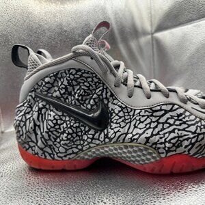 The Nike Air Foamposite Pro Wolf Gray Black Pink Men's Sneaker in size 10.5 is a stylish and comfortable athletic shoe perfect for casual occasions or basketball. Featuring a lace-up closure, rubber outsole, and foam insole, this mid-top sneaker offers a comfortable and secure fit. The animal print pattern and unique design set it apart from other sneakers, making it a standout choice for those looking for a fashionable and functional athletic shoe. With its iconic Nike Air product line and performance-driven design, this sneaker is a must-have for any sports enthusiast.