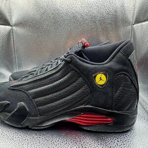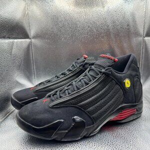 The Size 10.5 Nike Air Jordan 14 Retro Last Shot Black Men's Shoes 487471-003 are a stylish and comfortable choice for athletic activities, particularly basketball. With a lace-up closure and mid-top shoe shaft style, these sneakers offer a secure fit while the rubber outsole provides a durable and supportive base. The black colorway and retro theme add a classic touch to the Air Jordan 14 model, making them a popular choice for sneaker enthusiasts and athletes alike.