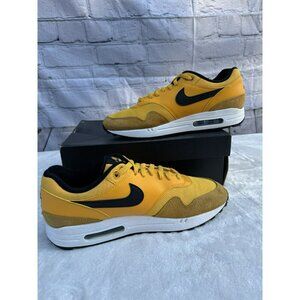 Up for sale is a pair of Nike Air Max 1 University Gold sneakers, size 10.5. These stylish athletic shoes feature a vibrant yellow colorway and a classic design that's sure to turn heads. Made with Nike's signature Air Max technology, these shoes provide superior comfort and support for all-day wear.