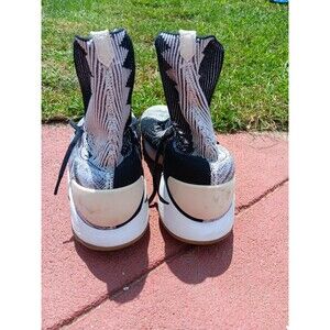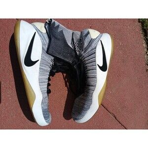 The Nike Hyperdunk 2016 Flyknit Black White in size 10.5 is a stylish and versatile athletic shoe perfect for activewear and casual occasions. Made with breathable FlyKnit material, this sneaker provides comfort and support for activities like gym training, walking, and even basketball. The black and white color scheme adds a colorful pop to your outfit, while the Nike Hyperdunk 2016 model ensures quality and performance for the summer, fall, and spring seasons. Whether you're hitting the gym or just running errands, these sneakers are a fashionable and functional choice.