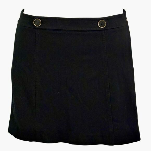 Size 10 Ann Taylor LOFT Short A Line Skirt Soft Twill Lined Black Buttons Office