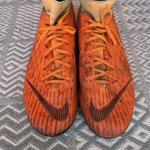 The Nike Men's Mercurial Superfly 6 Academy Soccer Cleats in size 11 feature a striking orange colorway that is perfect for soccer players looking to make a statement on the field. These cleats are designed with the signature Mercurial model, known for its innovative technology and high performance. Made in China, they offer a comfortable medium width fit and are part of the Nike Mercurial product line, ensuring top quality and style for any soccer enthusiast.