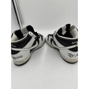 The product is a pair of Nike Supreme x Dunk SB High By Any Means sneakers in the Stormtrooper colorway, featuring a high top shoe shaft style and a white color with leather upper material. This size 11 shoe is part of the Nike Dunk product line and was released in 2022. With its unique design and collaboration with Supreme, this athletic shoe is sure to be a sought-after addition to any sneaker collection for men who appreciate quality and style.