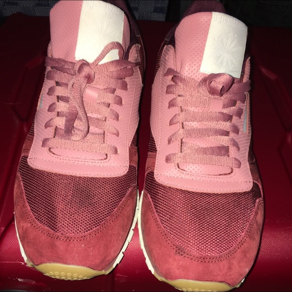 Brand new only worn once inside the house, fresh burgundy red with a hint of pink. Size 11 men’s
