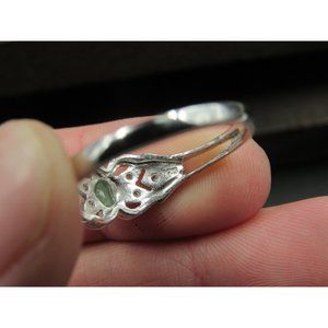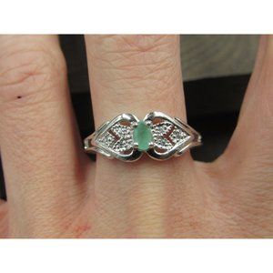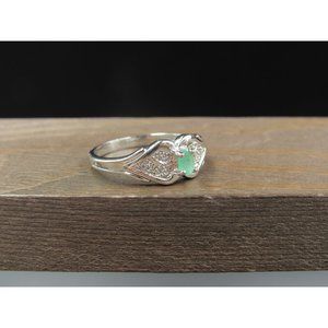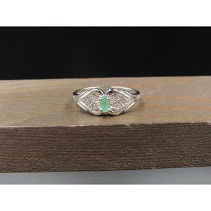 Size 11 Sterling Silver Small Green Emerald And Cubic Zirconia Accents Band Ring