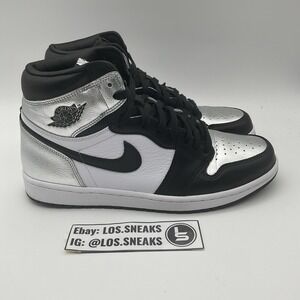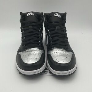 This pair of Jordan 1 High OG Metallic Silver sneakers are a must-have for any sneakerhead. The silver colorway is perfect for adding a touch of shine to any outfit, while the high top design provides maximum support and style. The shoes are a women's size 11.5W and feature the CD0461-001 style code.