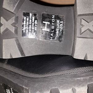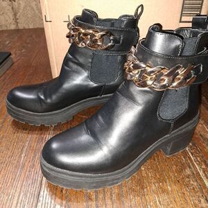 Size 11 H Halston Black Manila Gold Chain Lug Sole Bootie Chunky Boots