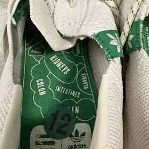 The product is a size 12 pair of Adidas Pharrell x Superstar Primeknit sneakers in white. These athletic shoes are part of the Adidas Superstar product line and feature a Primeknit upper material. The collaboration with Pharrell is reflected in the unique design and style, making them a popular choice for fashion-conscious men looking for a stylish and comfortable sneaker option in 2021.