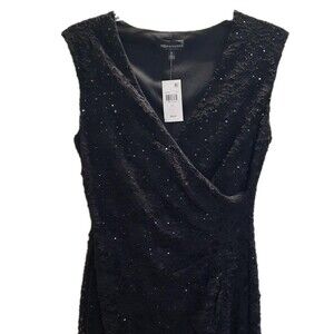 Size 12 Connected Apparel Black Sequined Lace Knee Length Sheath Dress $89 NEW