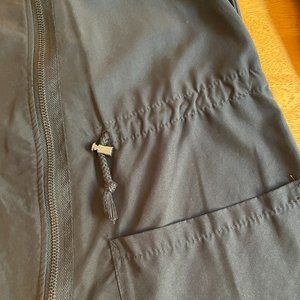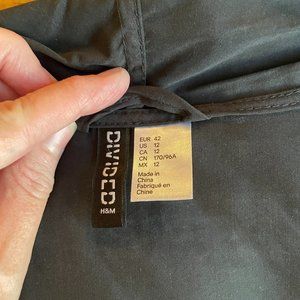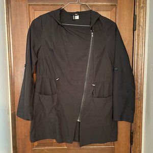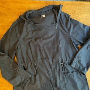 Like new; worn once or twice. Size 12 H&M hooded jacket. Side zipper on front with two open pockets and adjustable pull tabs to cinch waist. Long sleeves can be rolled up and buttoned. Super soft, silky material.