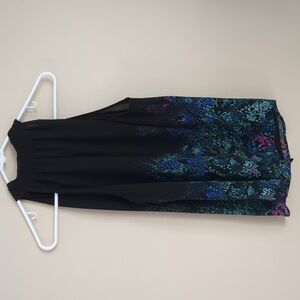 From a smoke-free and pet-free home. No rips, stains, or tears. There is a tie on the back of the neck and the material is semisheer.