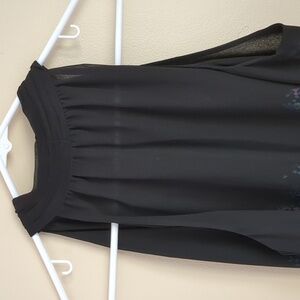 Size 12 Mint Velvet Tie Neck Black Semisheer Top Blue Green Purple Shirt