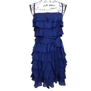 Size 12 NEW$200.00 ANTHROPOLOGIE VA ET VIEN SILK BLUE RUFFLE PARTY DRESS W/TIE