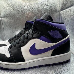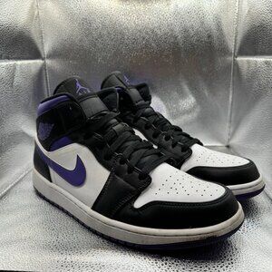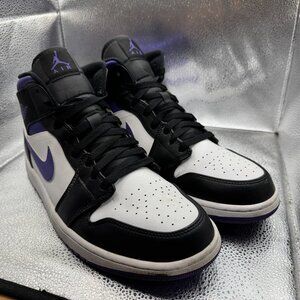 Size 12 Nike Air Jordan 1 Mid White Dark Iris Mens Sneaker Shoes 554724-095
