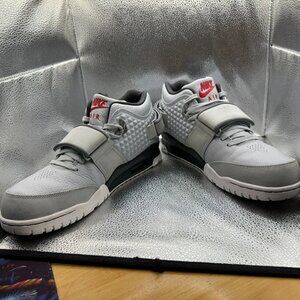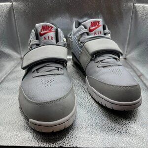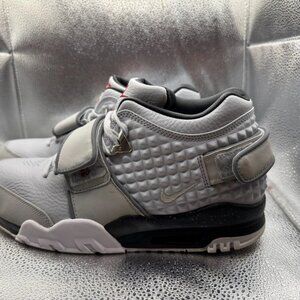 The Nike Air Trainer V Cruz in size 12 is a stylish and versatile athletic shoe suitable for casual wear. The low top design with a lace-up closure offers a comfortable fit, while the gray color with silver and black accents adds a modern touch. Made with leather upper material and a durable rubber outsole, these shoes are perfect for gym training and various athletic activities. With its distinctive design and performance-driven features, the Nike Air Trainer V Cruz is a great addition to any man's shoe collection.