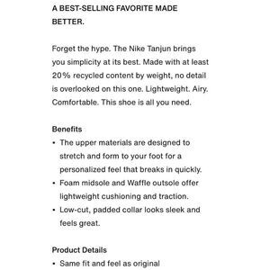 With a low top shaft style and athletic design, these sneakers are perfect for any activity. They're pre-owned but have been well taken care of and are in great condition. Upgrade your shoe collection today with these Nike Tanjun sneakers.