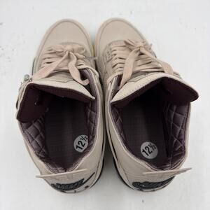 The A Ma Maniére x Air Jordan 4 Retro in size 12.5 is a stylish women's sneaker collaboration between Jordan and A Ma Maniére. This sneaker features a unique pink colorway, nubuck upper material, and a retro design that combines classic Air Jordan 4 silhouette with modern style elements. Released in 2024, this athletic shoe is part of the Air Jordan product line and is sure to be a coveted addition to any sneaker collection.