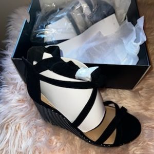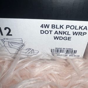 Brand new never been wore. size 12w torrid wedges. Black with white polka-dots on heel. Super cute!! wide width, torrid shoes!