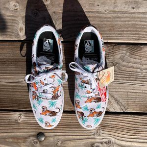 Brand New, Original Tags, Vans x Discovery Collaboration, Size 13 Men's, White with Tiger+Plant Artwork