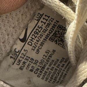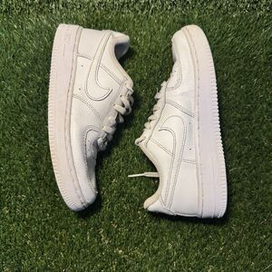 Size 13 (PS) - Nike Force 1 LE Low Triple White: No box, no bad smell. The shoes have slight staining and wear on the upper, with the outsole showing some signs of use. Overall, they are in good condition. Please zoom in on the photos for a closer inspection of all the details.