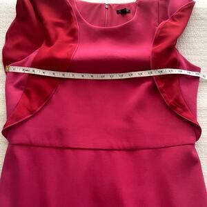 Size 14 Ann Taylor Pink Shift Dress with Ruffle and Contrast Red Lining