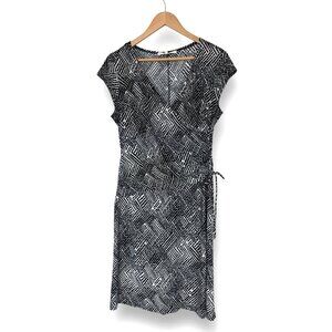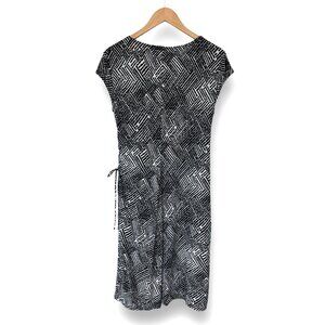 Size 14 Evan Picone Black & White Print Faux-Wrap Dress Spring Summer Wedding