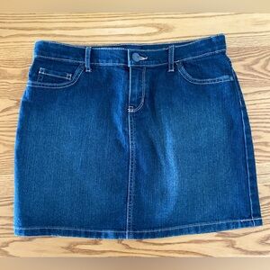 Stylish denim skirt with classic stitching. Has inner belt. Perfect for casual outings. Size 14 girls!