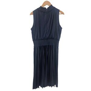 Size 14 NAVY BLUE SHINY SMOCKED HIGH NECK PLEATED MIDI DRESS Special Occasion