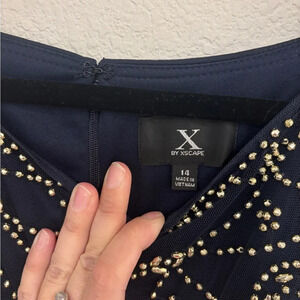 Size 14 - NWT Xscape Navy Embellished-Neck Gown