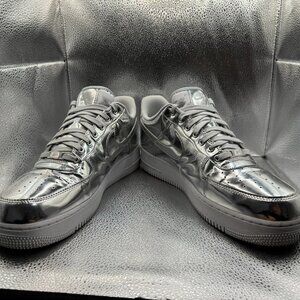 Size 14 Nike Air Force 1 SP Chrome Metallic Silver Womens Sneaker CQ6566-001
