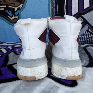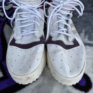 Elevate your sneaker game with these rare Adidas Originals Rivalry RM shoes. The sleek white and burgundy design is perfect for any stylish man looking to add a unique touch to their athletic wardrobe. Made with high-quality leather, these sneakers are both durable and comfortable, ensuring you can wear them for any activity.