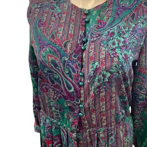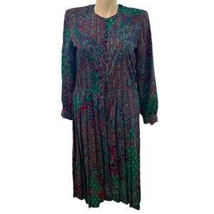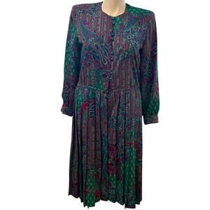 Size 14 Schrader Womens 1980s Polyester Dress Shoulder Pads Pleated Green Purple