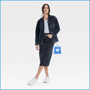 Size 14 - Womens High-Rise Denim Midi Skirt - Universal Thread - Black Wash