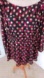 It has a floral print with red flowers and gold dots. Does not have the sash as seen in the model. But honestly not needed, it can be worn with or without or a nice black belt.