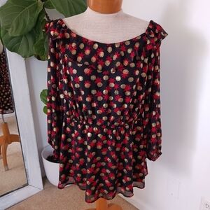 Size 14/16 Lane Bryant, Blouse Womens Blouse Sheer Floral Polka Dot Spring