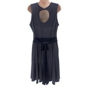 Size 14W 1X NAVY BLUE/WHITE TINY POLKA DOT CUTOUT DRESS W/TIE Summer PLUS SIZE