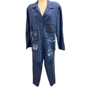 Size 14W Piccalino Plus Women's 2 Piece Outfit 1980s Vintage Pants Top Cotton