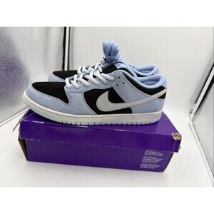The product is a size 15 Nike Dunk SB Low Aluminum sneaker in a striking blue color. This athletic shoe features a low top design with a suede upper material, making it both stylish and comfortable for everyday wear. Part of the Nike Dunk product line, this model (HF3063-400) was released in 2025, perfect for men looking to add a unique and fashionable touch to their footwear collection. With the iconic Nike brand and quality craftsmanship, these sneakers are sure to be a standout in any man's wardrobe.