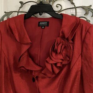 Size 16 Adrianna Papell Evening Essentials Red Crinkled Ruffled Jacket. NWOT.